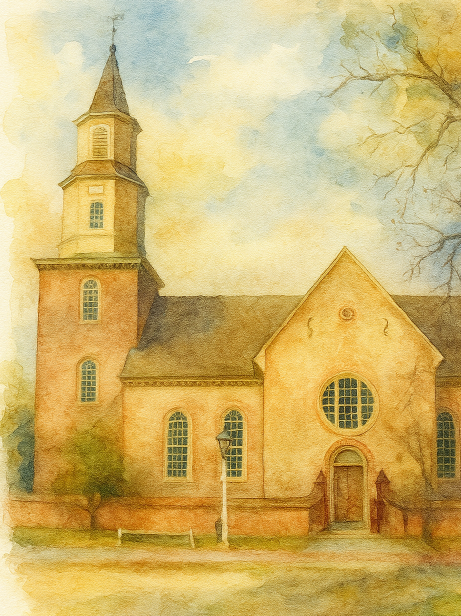 Bruton Parish Church is one of the oldest Episcopal churches in America. It was established in 1674 by the consolidation of two earlier parishes, Middle Plantation and Marston. The present brick building, completed in 1715, was designed in the form of a Greek cross to serve the growing capital. During the colonial era, it became the spiritual home for many prominent Virginians, including George Washington, Thomas Jefferson, and Patrick Henry. The church played a central role in the community, hosting both worship and political gatherings. After the American Revolution, its influence declined as Williamsburg lost prominence (no longer the capital of Virginia) and the building fell into disrepair. In the late-19th century, preservation efforts revived interest in the church’s history and architecture. Today, Bruton Parish remains an active congregation, while also serving as a historic site.